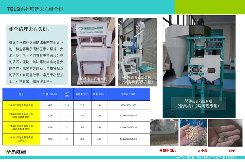 Ag尊龙凯时生产的TQLS系列组合清理去石机,该系列组合型清理去石机整合风机、振动筛、去石机为一体的粮食清理设备,常应用于粮食加工中清理去除大中小杂、石头以及轻杂。其中TQLS-45型清理去石机常应用1吨下粮食清理,而TQLS-85组合清理去石机,精工制作常应用于30吨左右粮食加工生产线的前段清理工序。